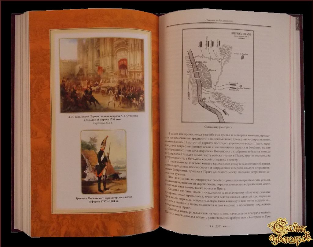 Александр Васильевич Суворов Книга "Наука побеждать", вобравшая в себя наиболее интересные и значимые произведения величайшего русского полководца Александра Васильевича Суворова (1730-1800), а также уникальные мемуарные свидетельства современников и очевидцев. Из приказов и рапортов, переписки и мемуаров, по… Читать дальшеходных дневников и теоретических кабинетных штудий перед читателем складывается гигантская мозаика русской военной истории последней трети XVIII века. Множество специально подобранных для настоящего издания старинных карт, картин, рисунков и портретов помогут читателю увидеть, какой была описываемая эпоха Суворова - великий век великих российских побед Страниц: 480 (Офсет) Масса: 1012 г Размеры: 265x170x35 мм. Кожаный переплет. Ручная работа.